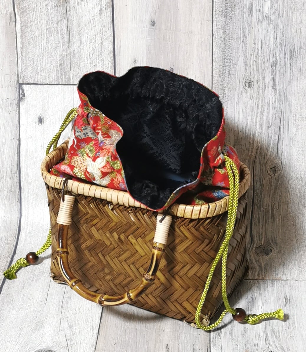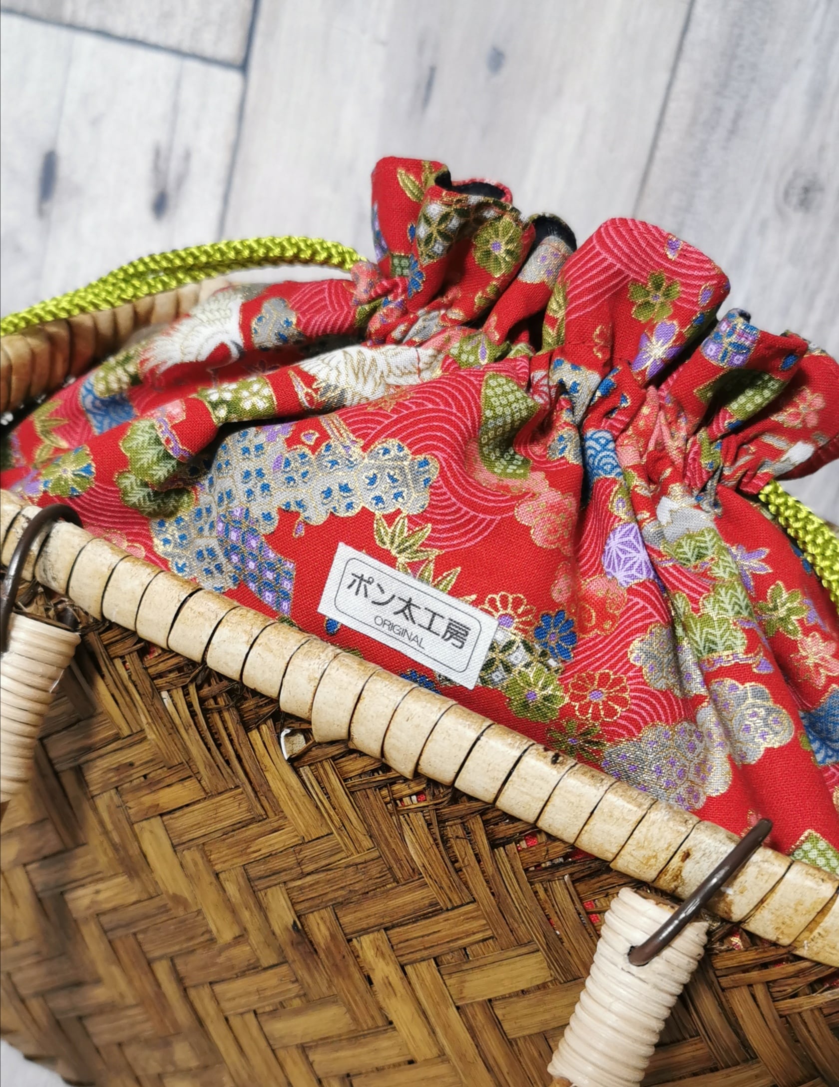 ポン太工房オリジナルの巾着と一体化させた『Newバージョン』の竹かご巾着です!