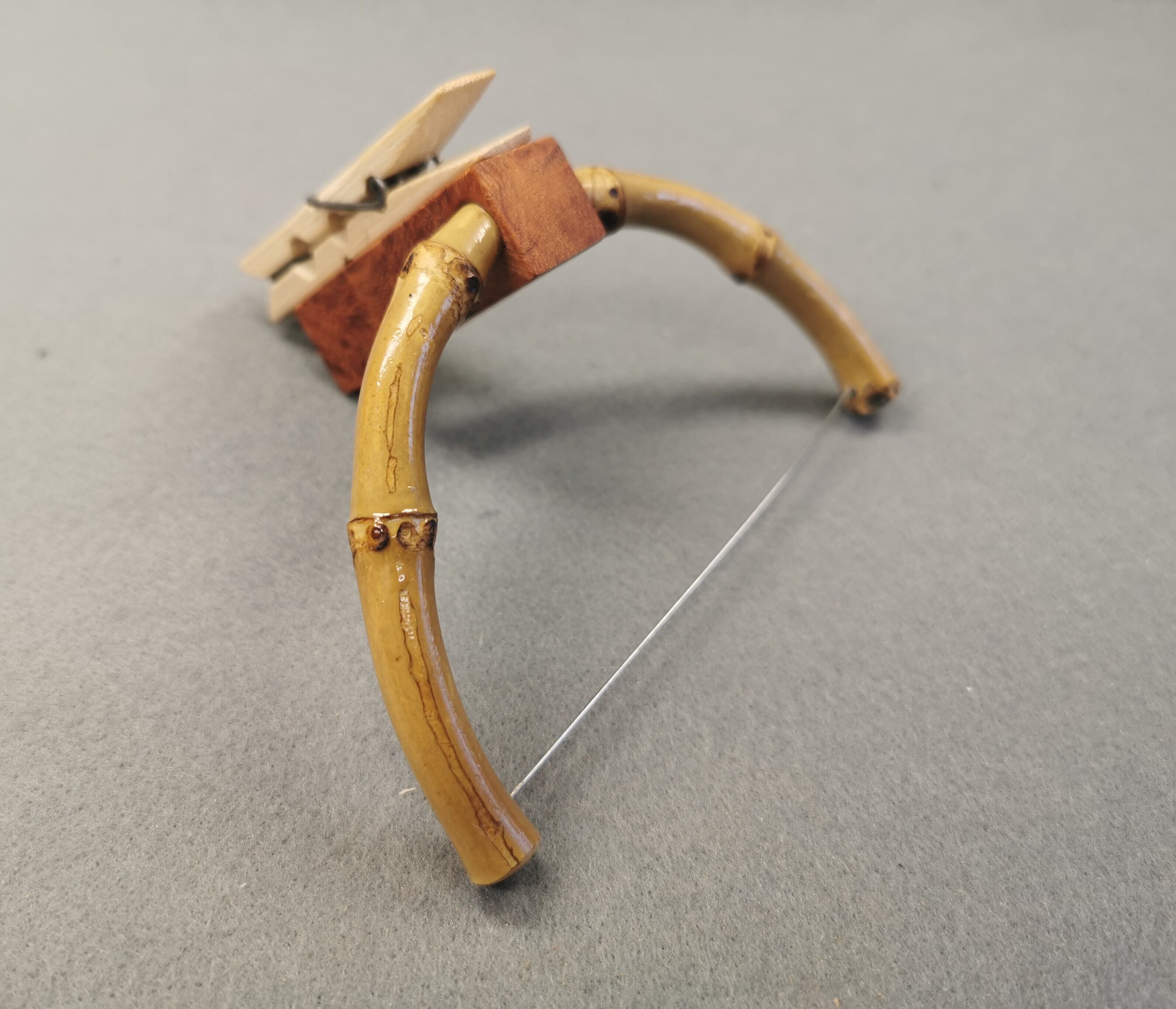 木地師と塗師が伝統技法を駆使し、自然な木目を活かし天然漆を塗り上げた非常に美しい飛騨紅春慶塗りの重箱を利用した落とし桶です。付属する弓形針外しは、アームを厳選した布袋竹と添木に稀少性の高い美しい花梨瘤をコラボさせております。