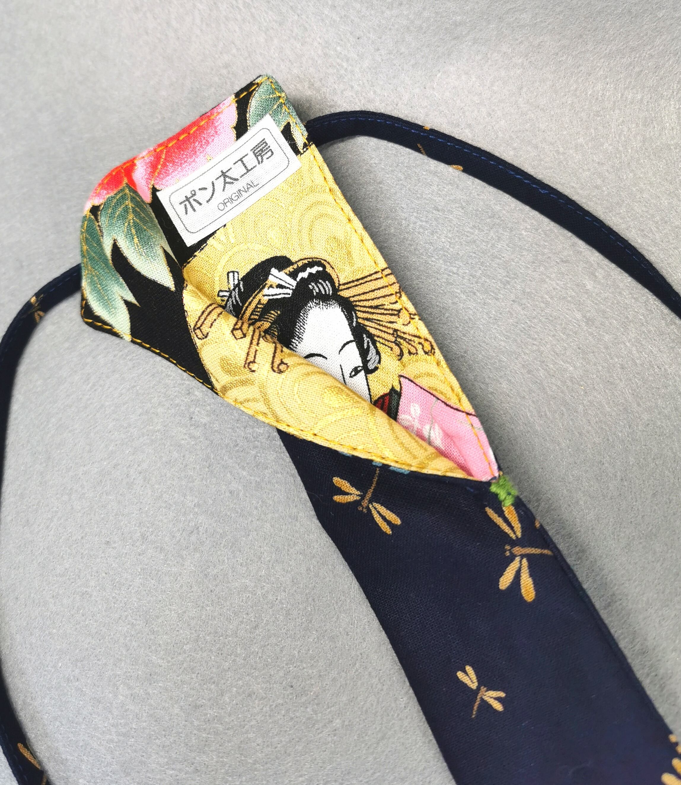 表地は勝ち虫の紺色、裏地は浮世絵模様。