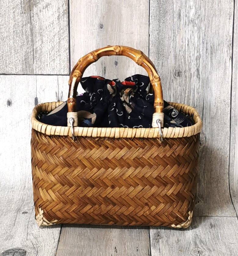 ポン太工房オリジナルの巾着と一体化させたの竹かご巾着です!