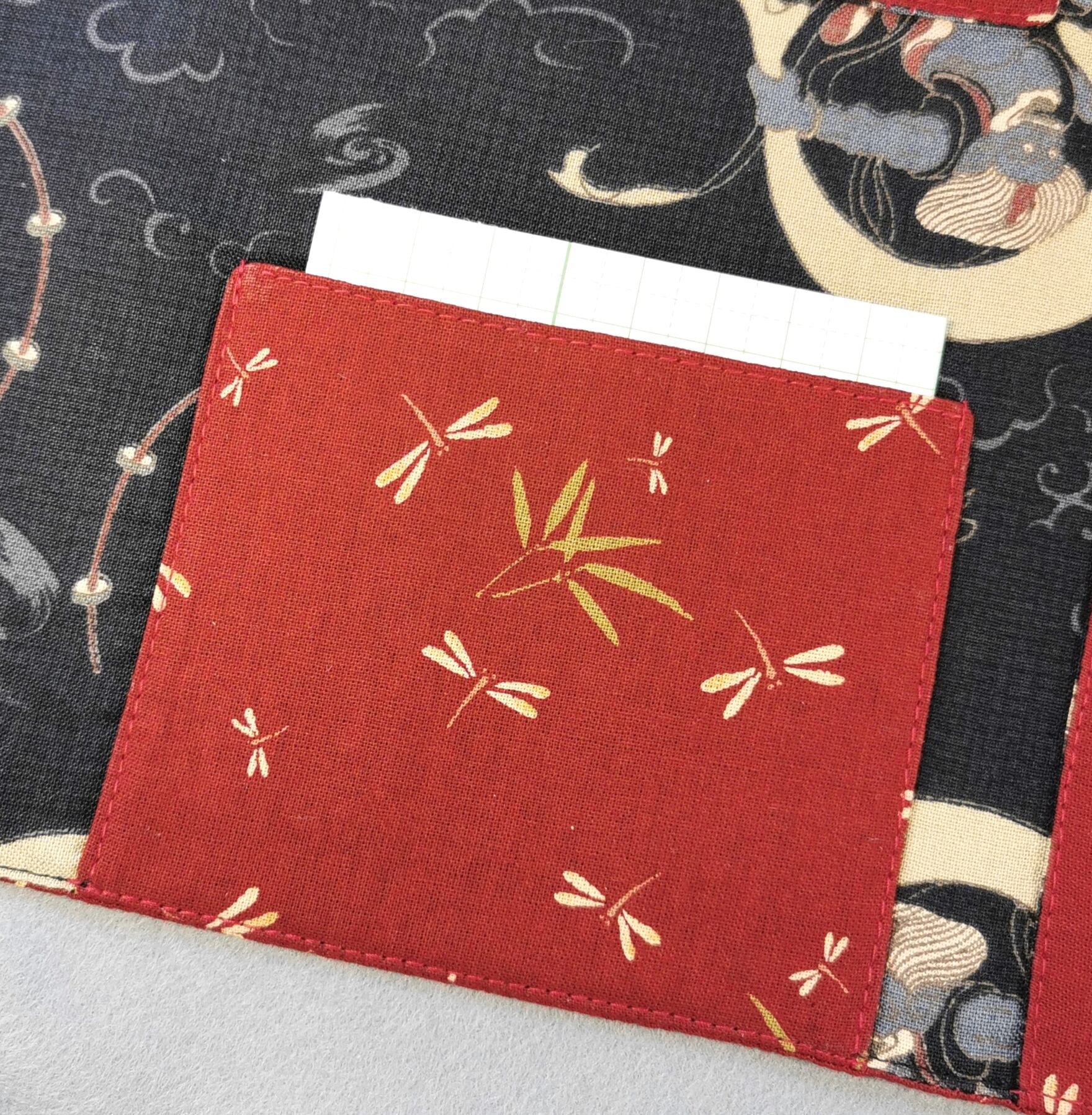 表地に勝ち虫(赤)、裏地は風神雷神(黒)を組合せました。