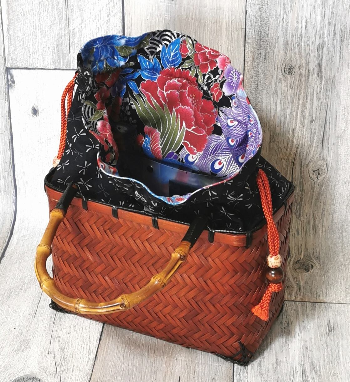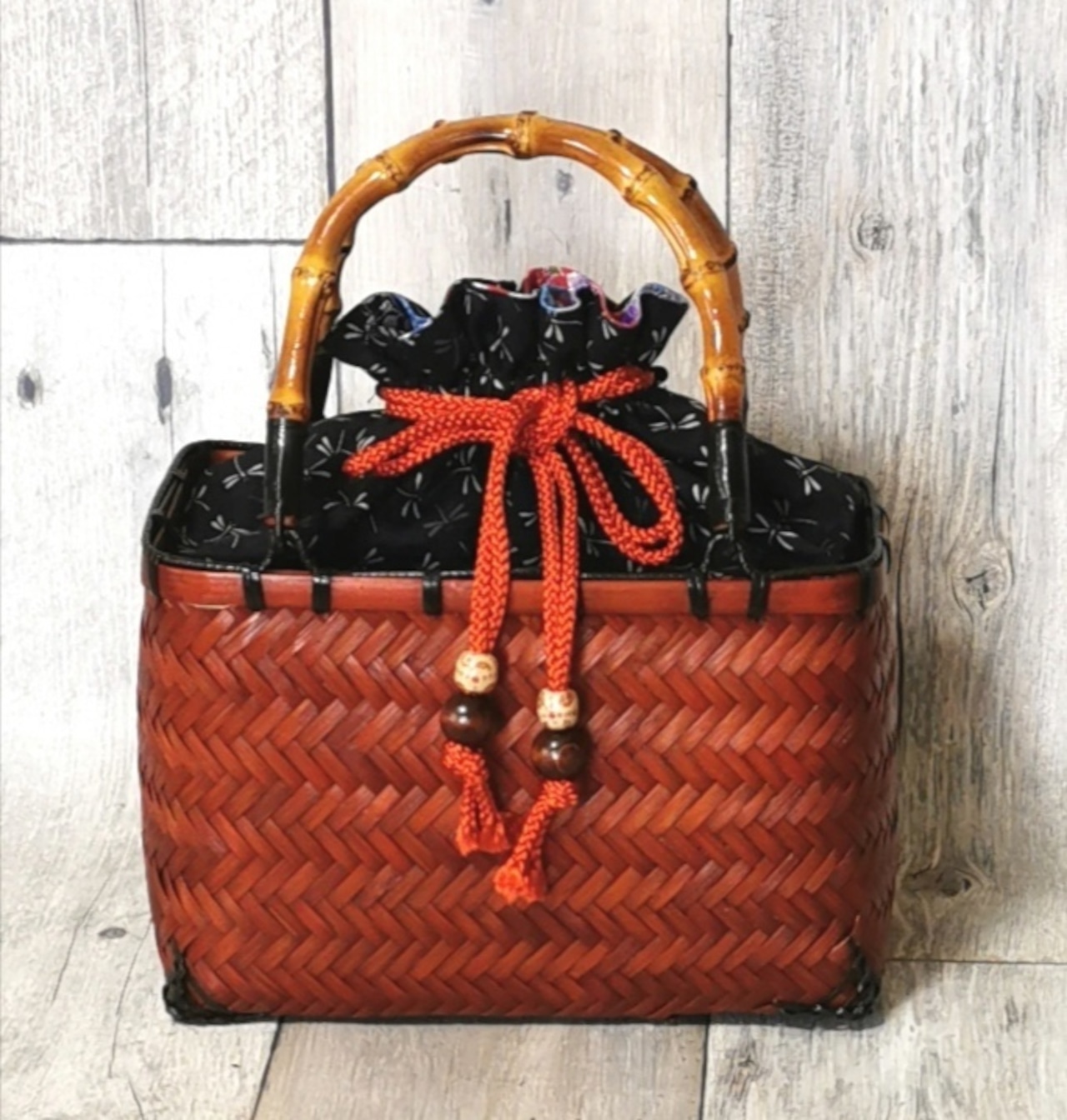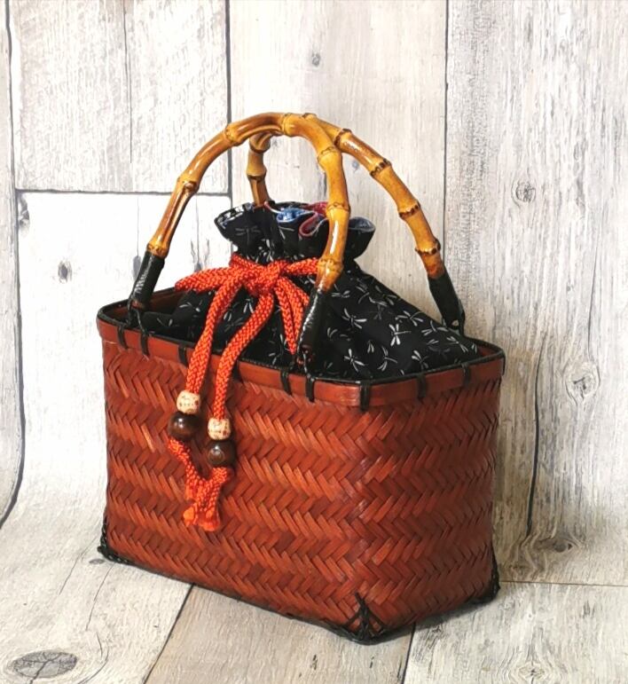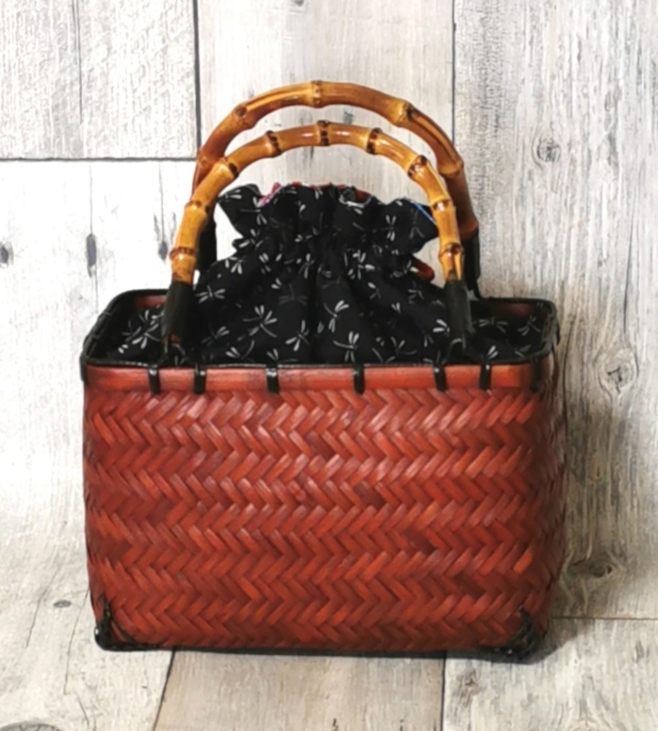 ポン太工房オリジナルの巾着と一体化させた『スペシャルバージョン』の竹かご巾着です‼️