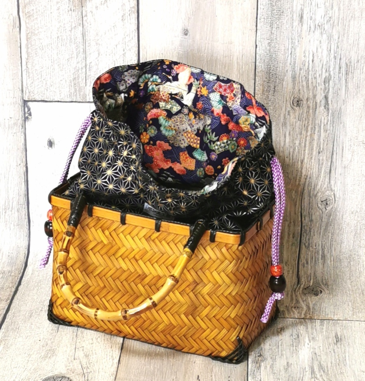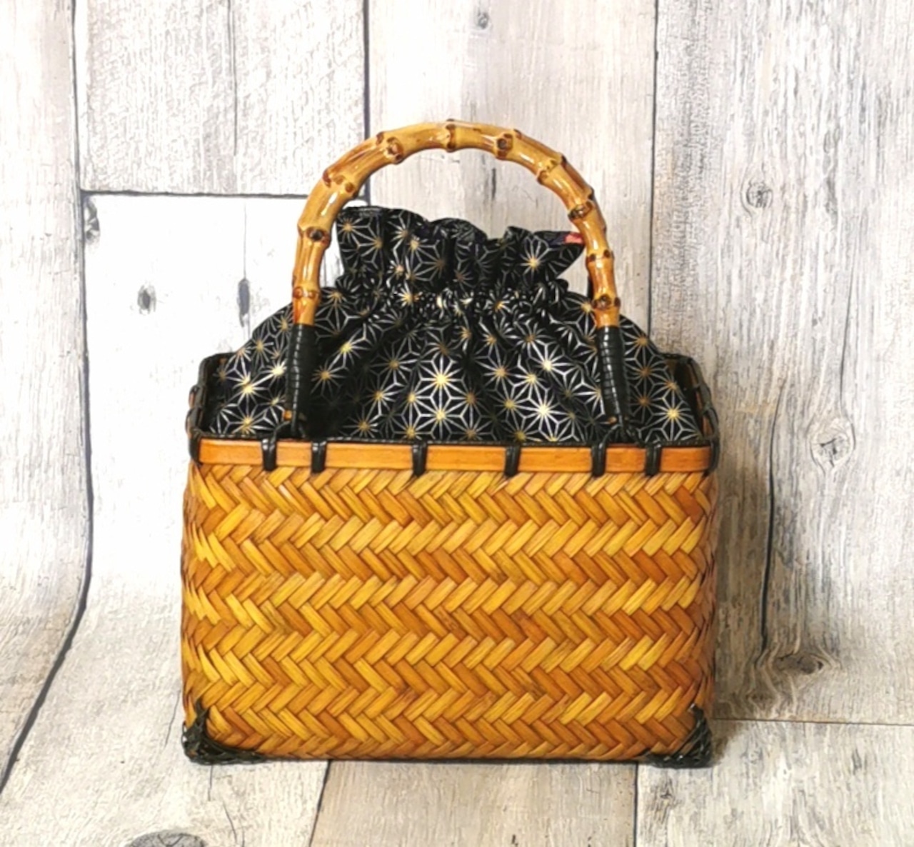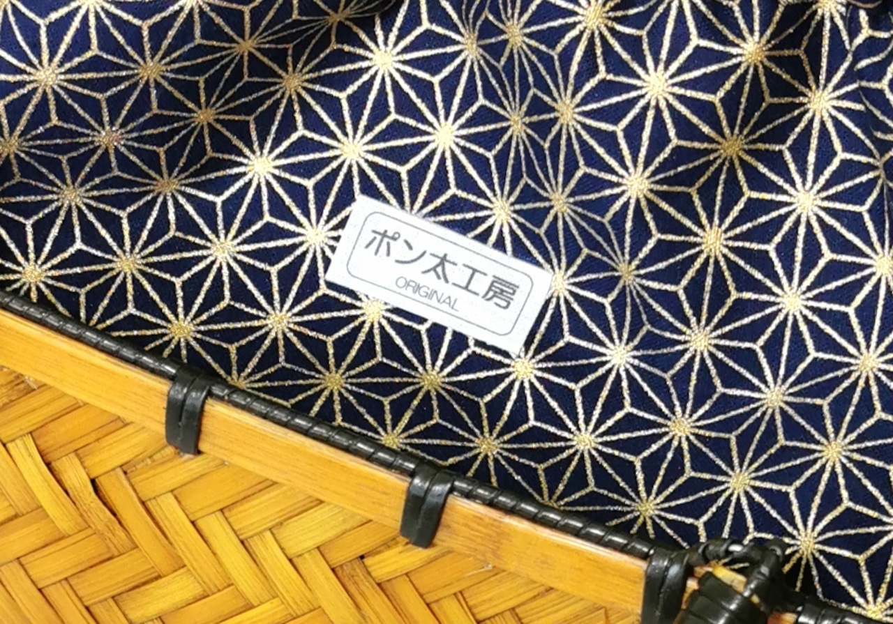 ポン太工房オリジナルの巾着と一体化させた『スペシャルバージョン』の竹かご巾着です‼️