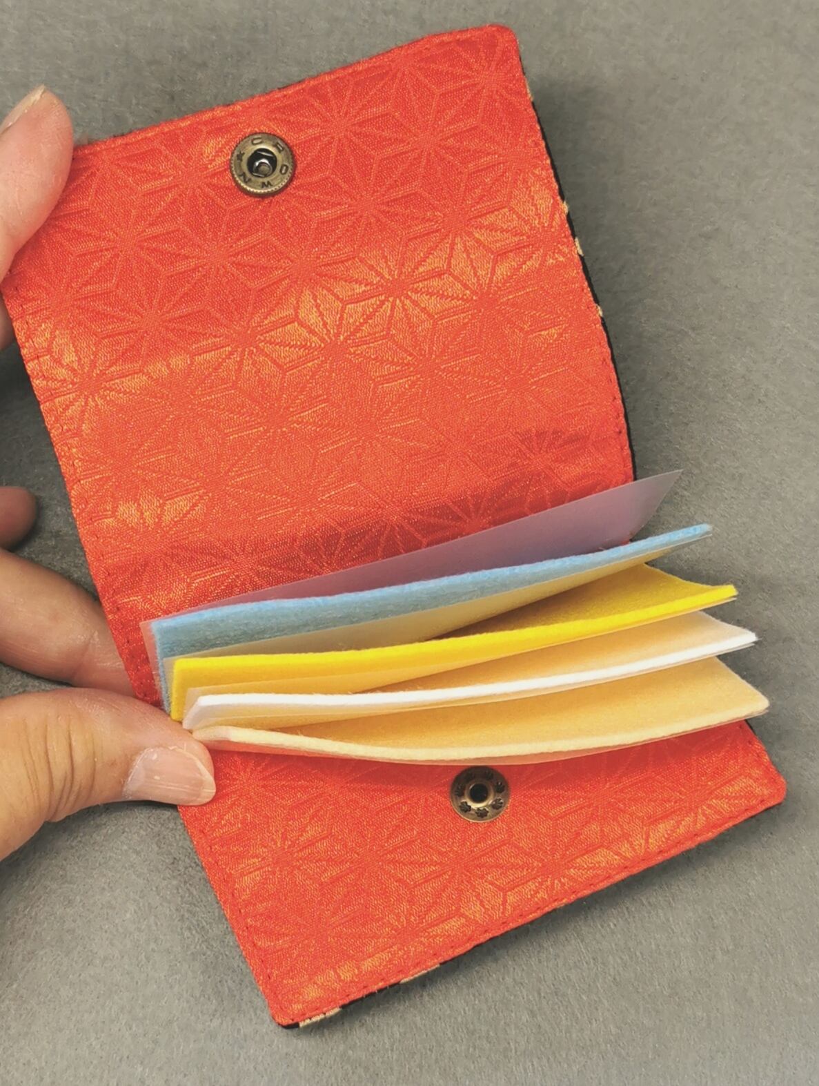 内側はフェルト4枚の両面を透明のビニールシート5枚で挟み丁寧に縫製しています。