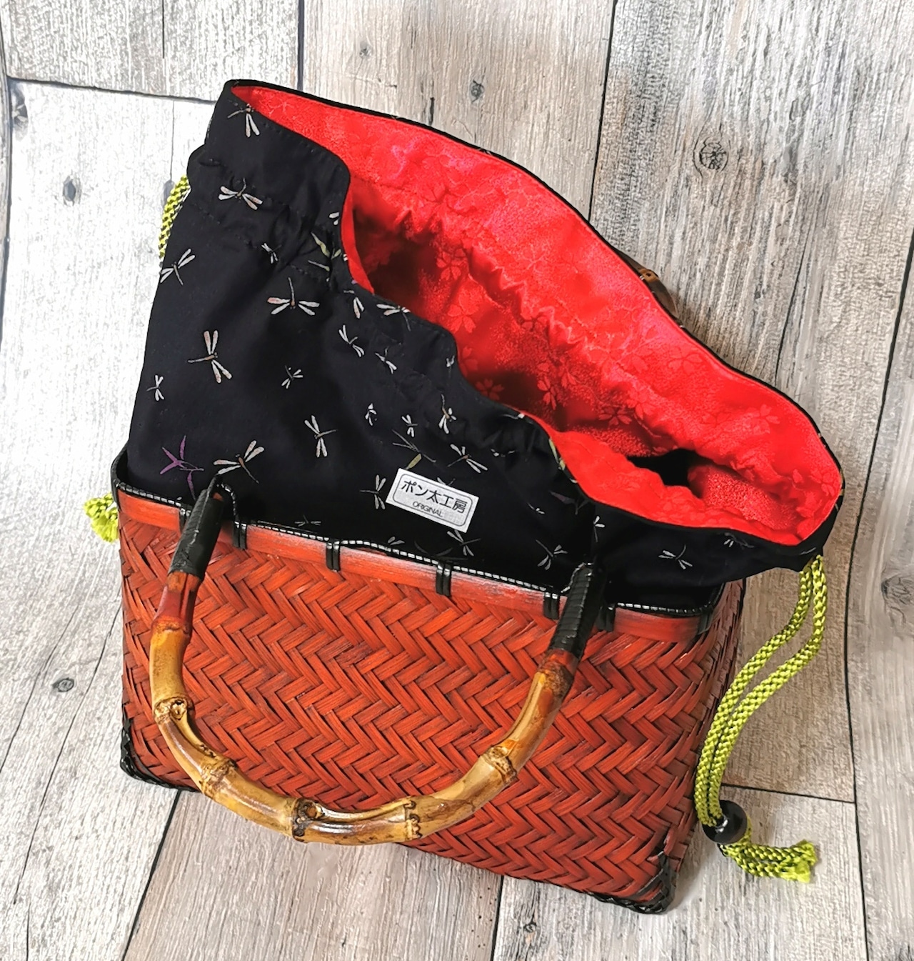 ポン太工房オリジナルの巾着と一体化させた『スペシャルバージョン』の竹かご巾着です‼️