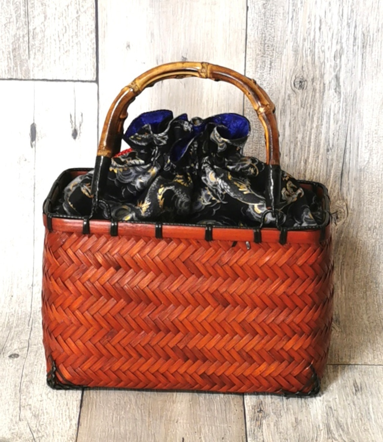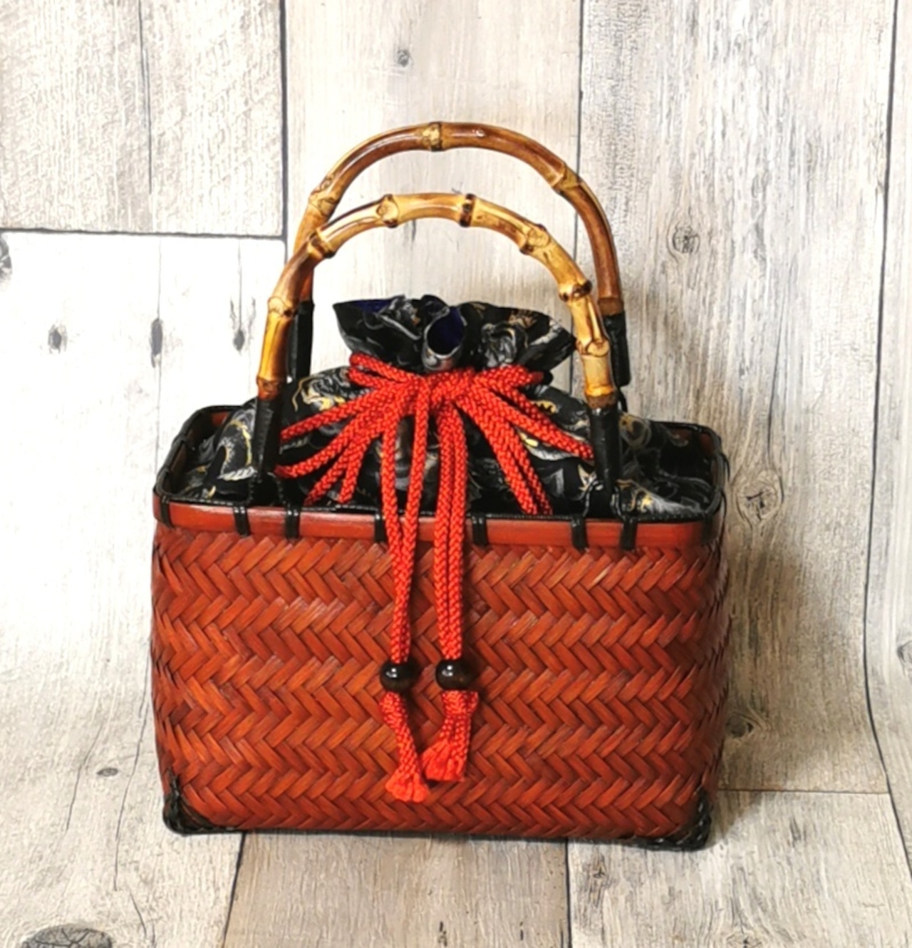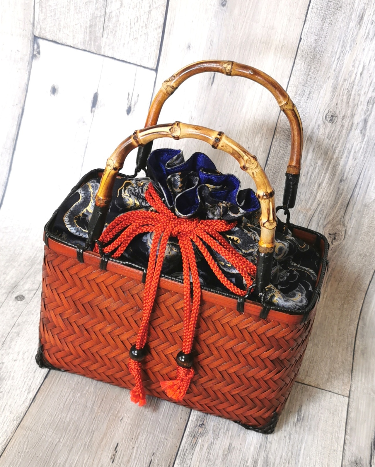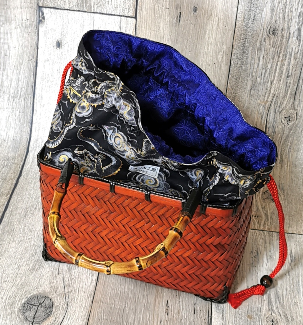 ポン太工房オリジナルの巾着と一体化させた『スペシャルバージョン』の竹かご巾着です‼️