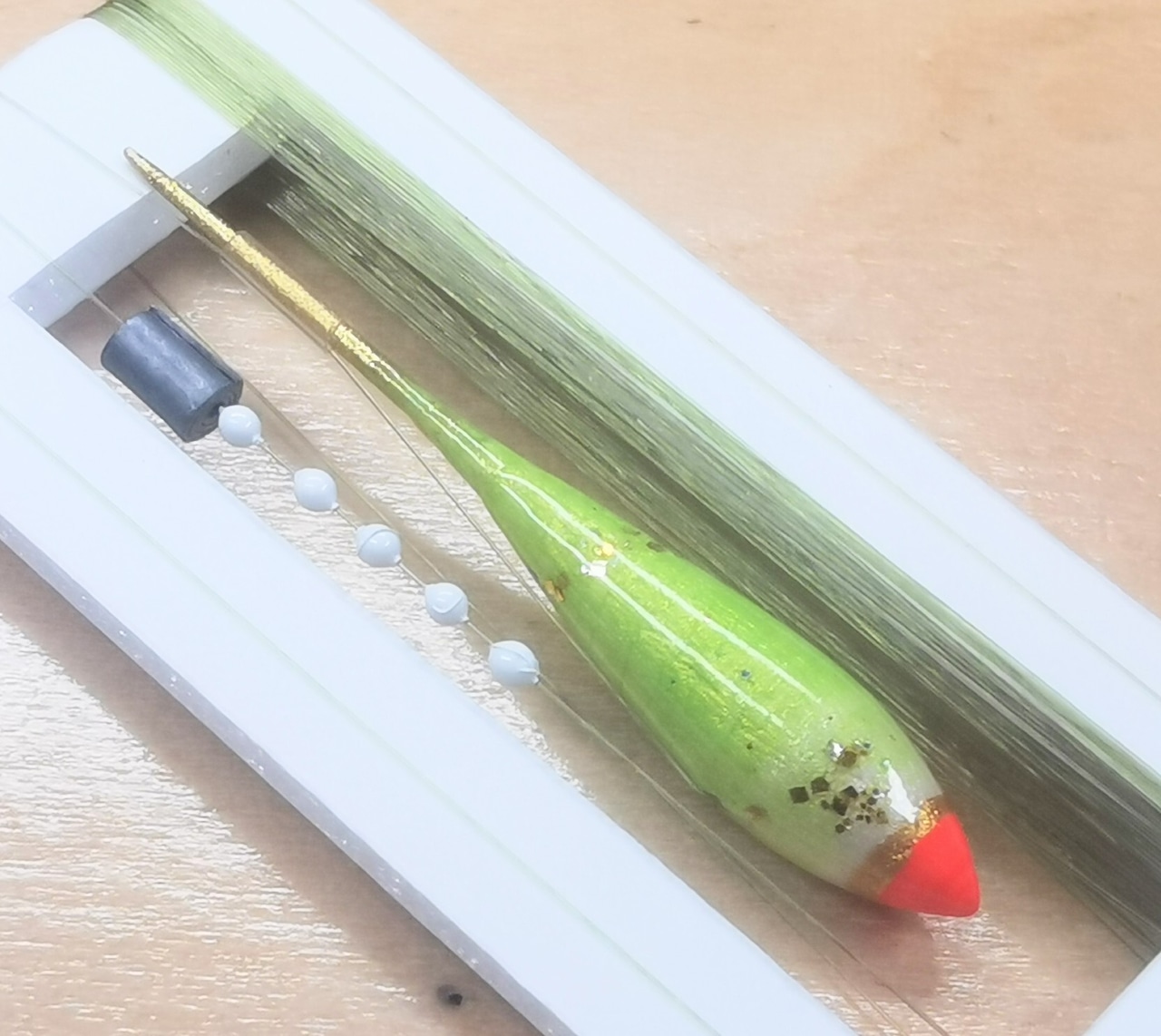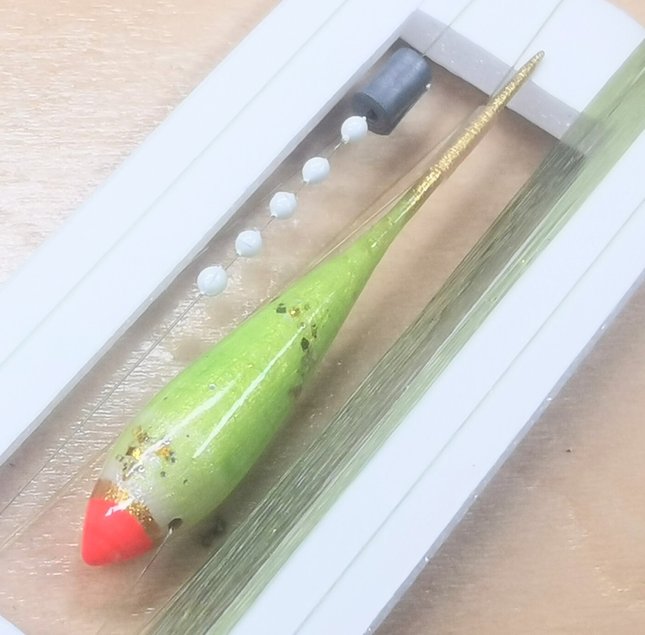 ※ 針無しの状態でゼロバランス調整済み、使用する針とエサでシモリ速度が変わります。オリジナルのハンドメイド商品につきすべて一品ものです。