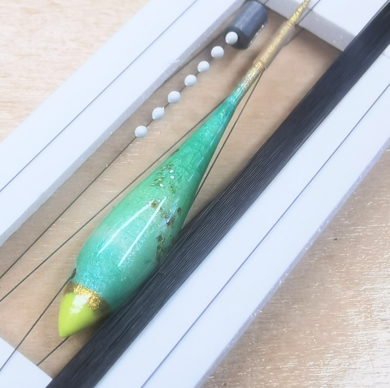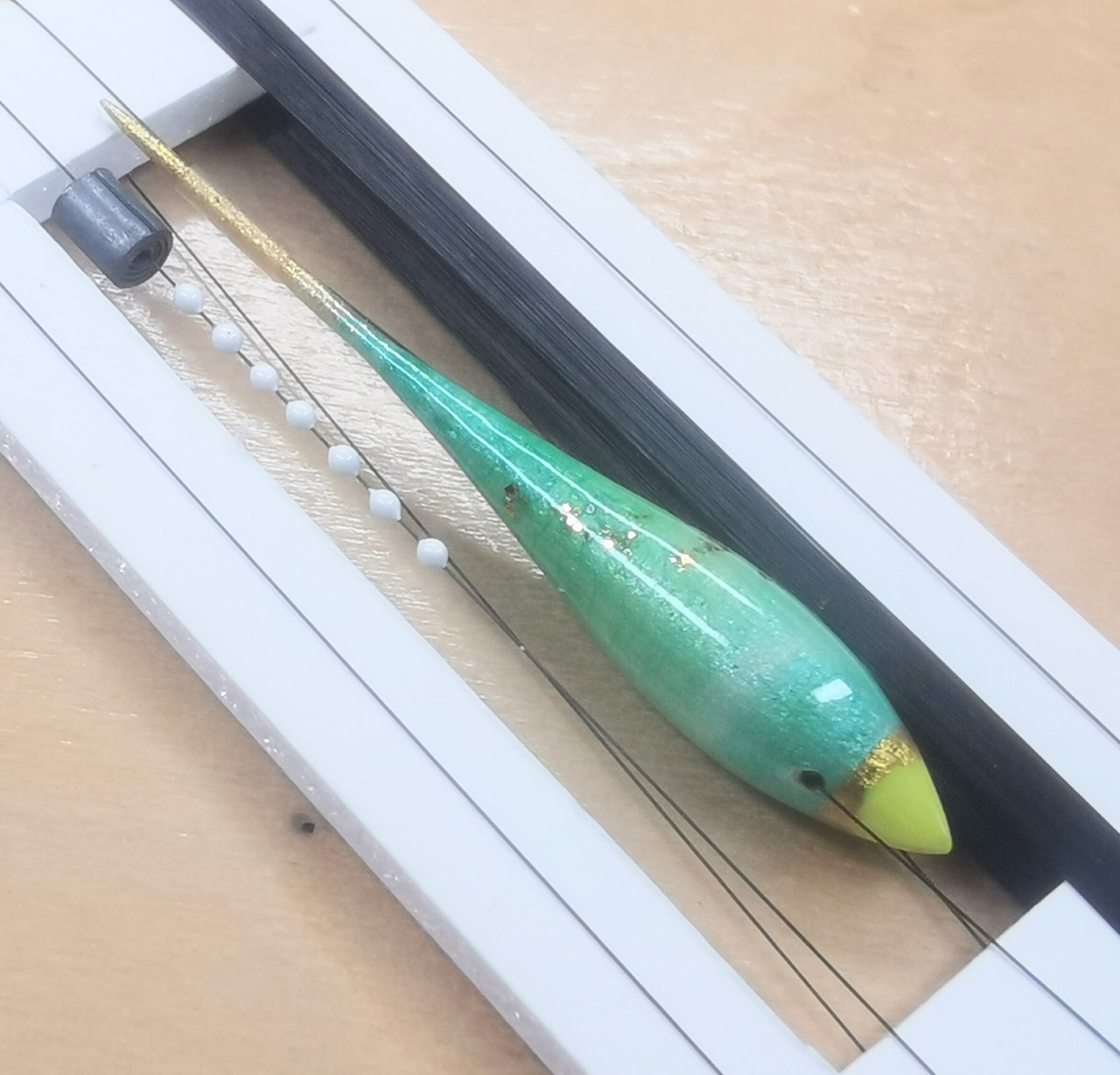 ※ 針無しの状態でゼロバランス調整済み、使用する針とエサでシモリ速度が変わります。オリジナルのハンドメイド商品につきすべて一品ものです。