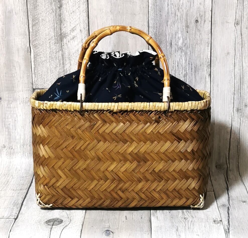 ポン太工房オリジナルの巾着と一体化させた『Newバージョン』の竹かご巾着です!