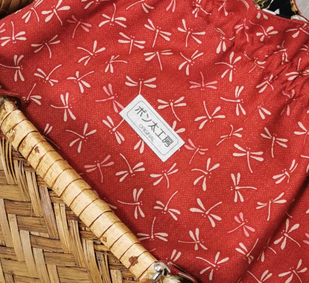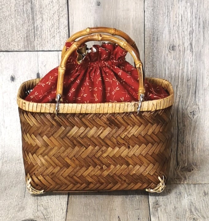 ポン太工房オリジナルの巾着と一体化させた竹かご巾着です!