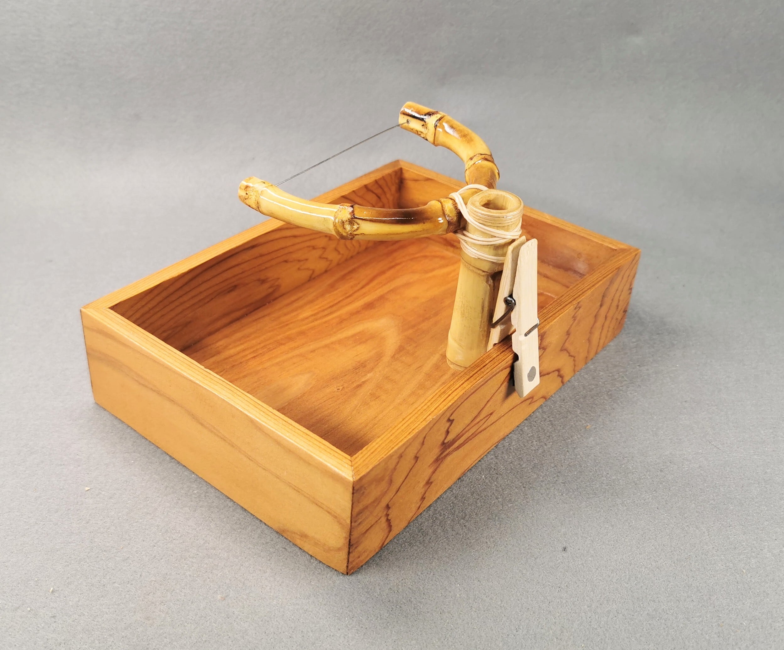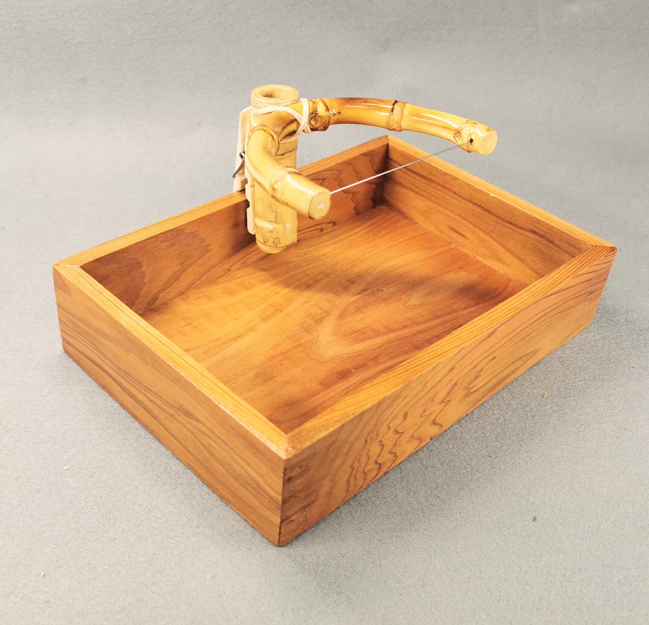 屋久島の標高500メートル以上の山地に自生する杉の中で、栄養の少ない花崗岩に生える樹齢1000年以上の杉のみに与えられる称号『 屋久杉 』を使用したタナゴ用の落とし桶です。全面表裏、厳選した木目の美しい屋久杉をふんだん使いコンパクトに仕上げました。