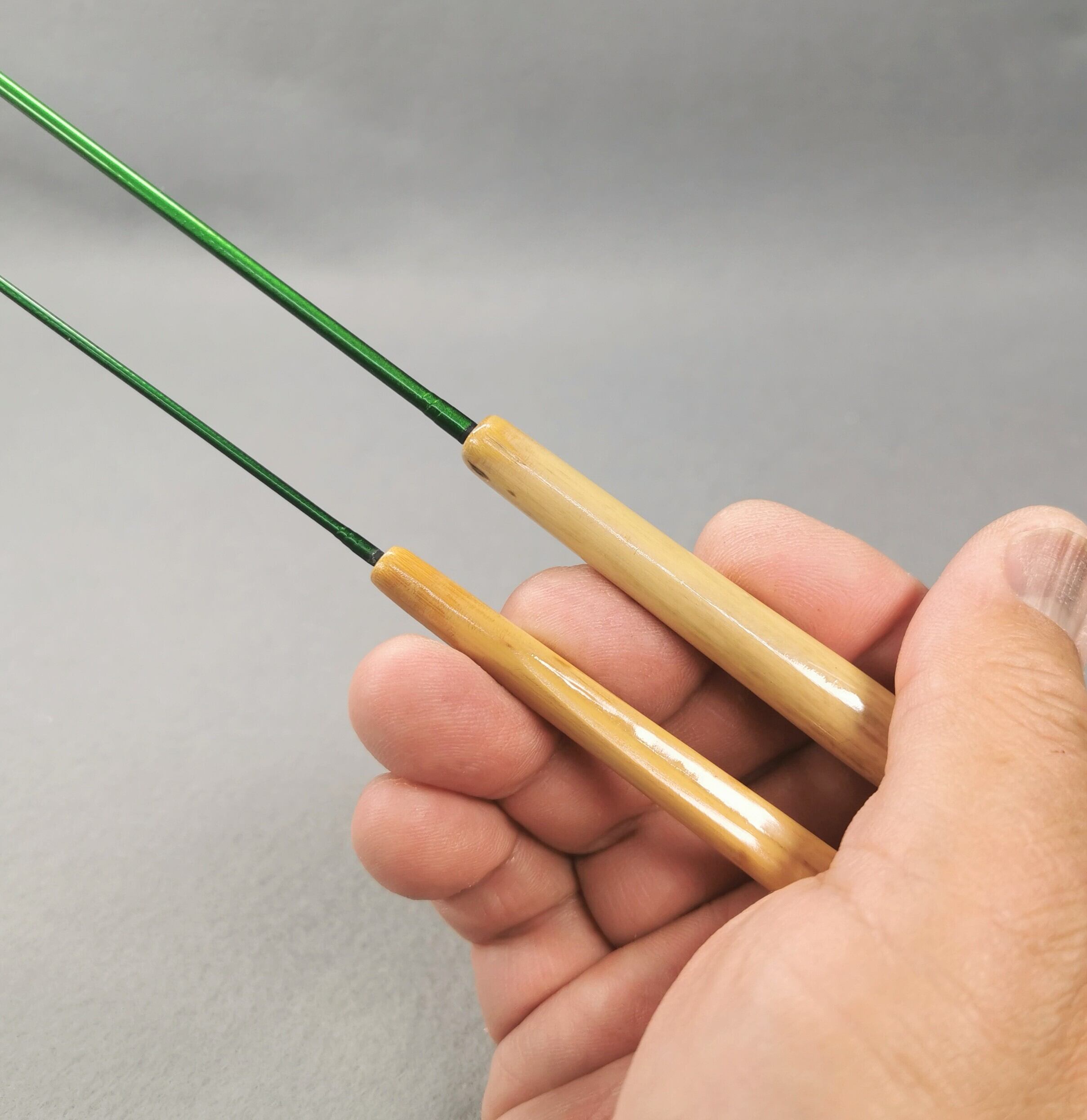 仕様は振り出しの3本継ぎに、希少ならっきょう紋竹のグリップを2個使用。グリップの付替えで53cmと77cmの2wayで楽しめます。(振り出しの先端2本を抜き装着)