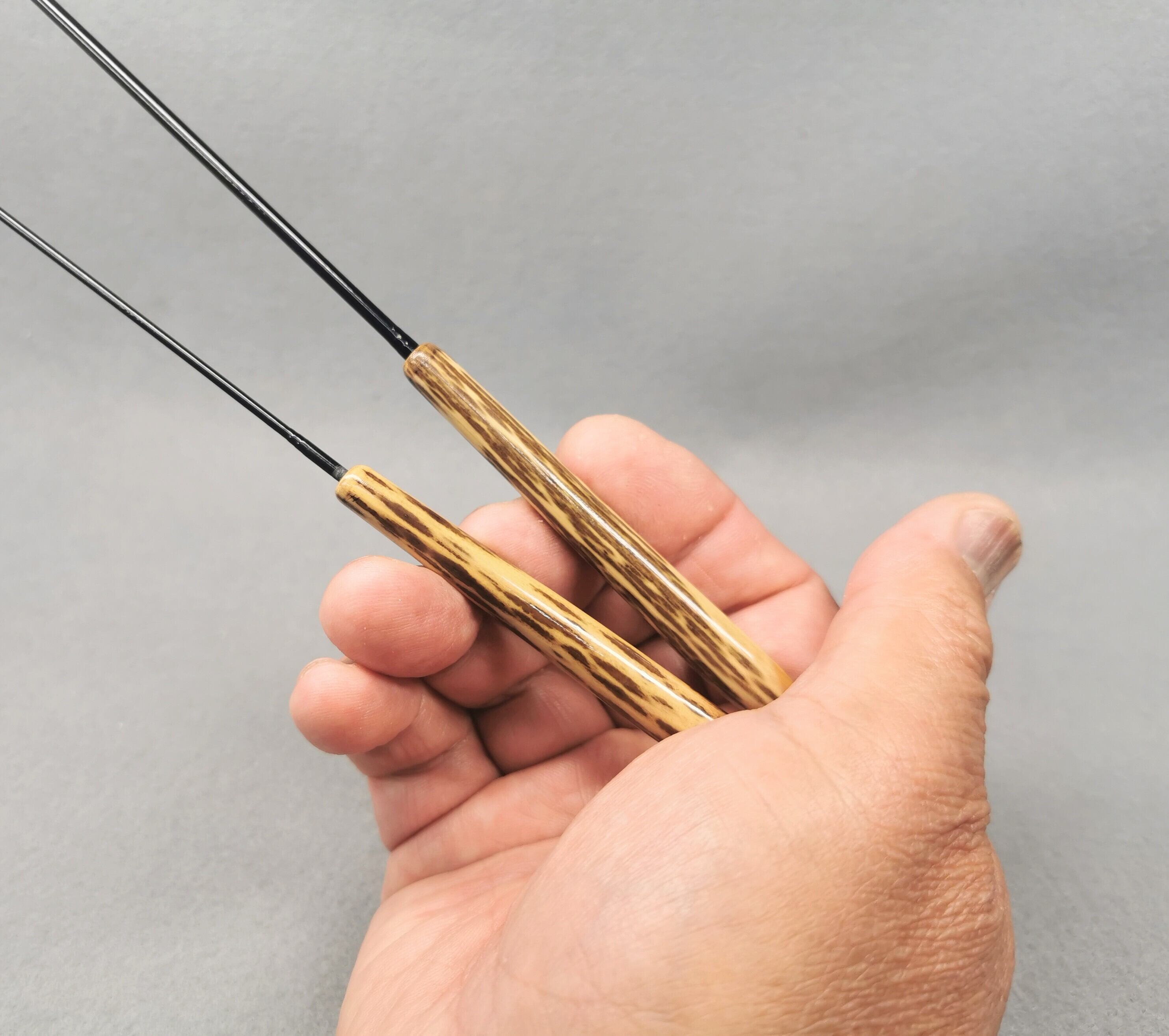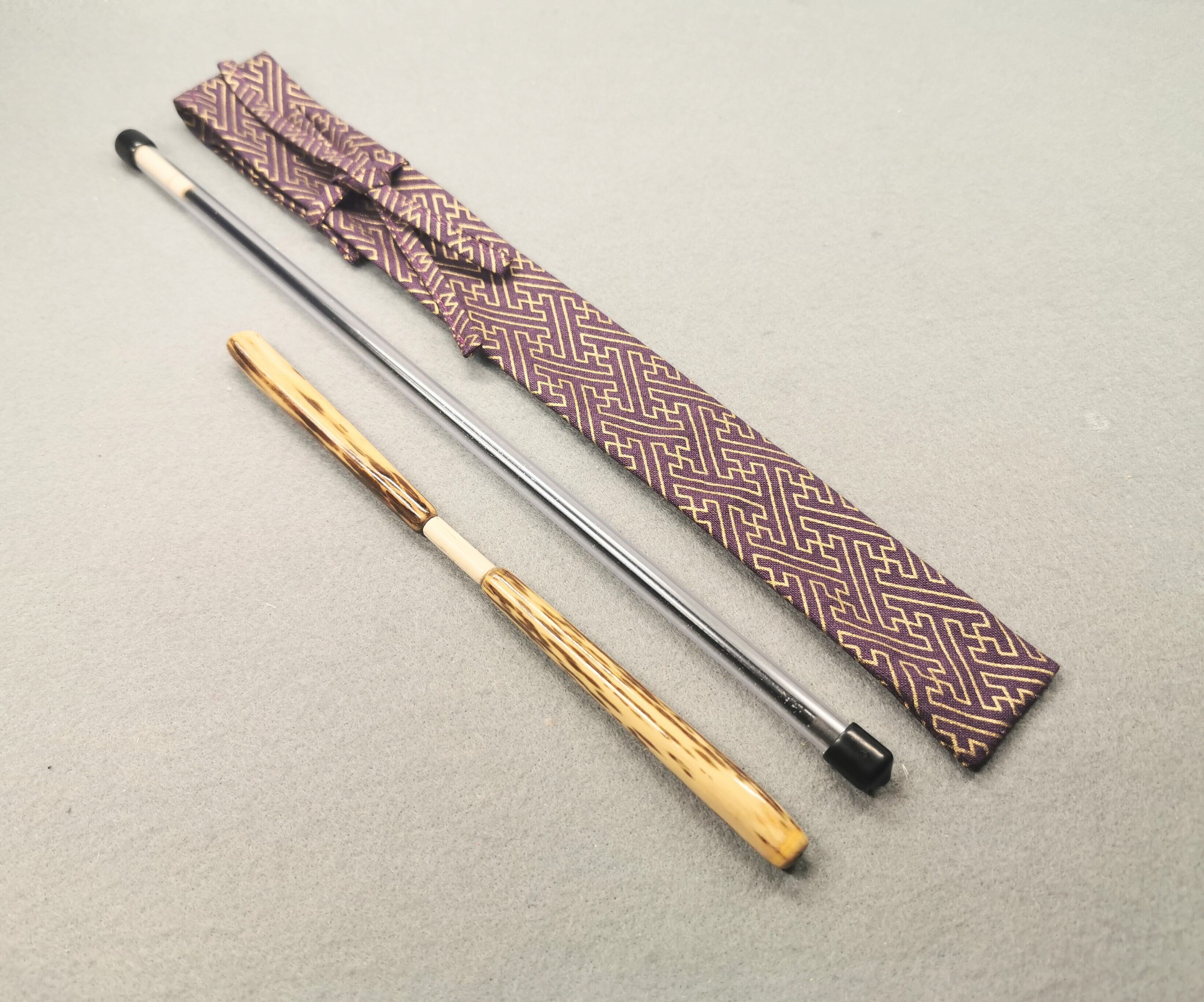 仕様は振り出しの3本継ぎに、希少ならっきょう紋竹のグリップを2個使用。グリップの付替えで53.5cmと77cmの2wayで楽しめます。(振り出しの先端2本を抜き装着)