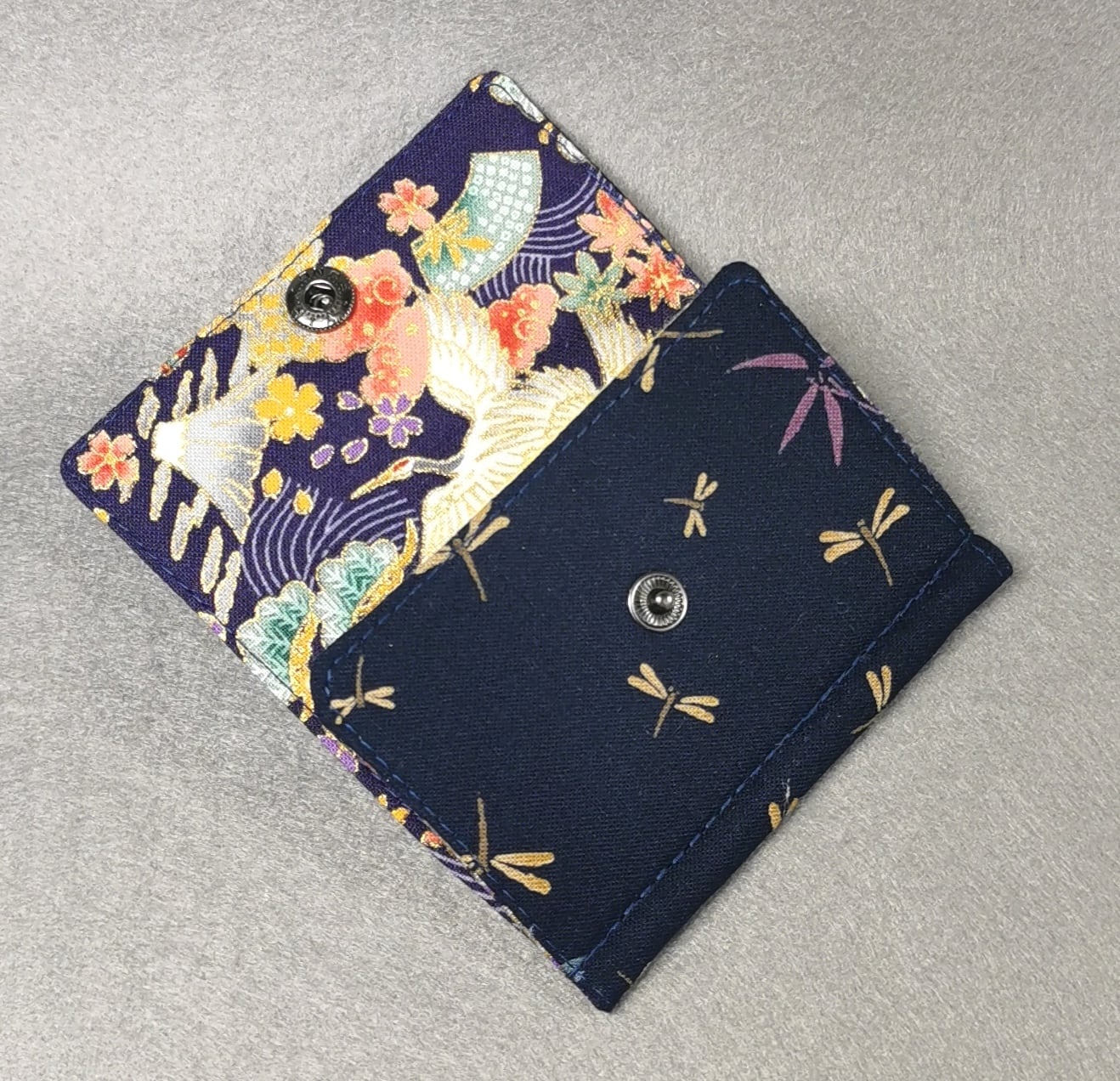 表地は紺色の勝ち虫模様、裏地は紺の鶴富士柄で合わせました。