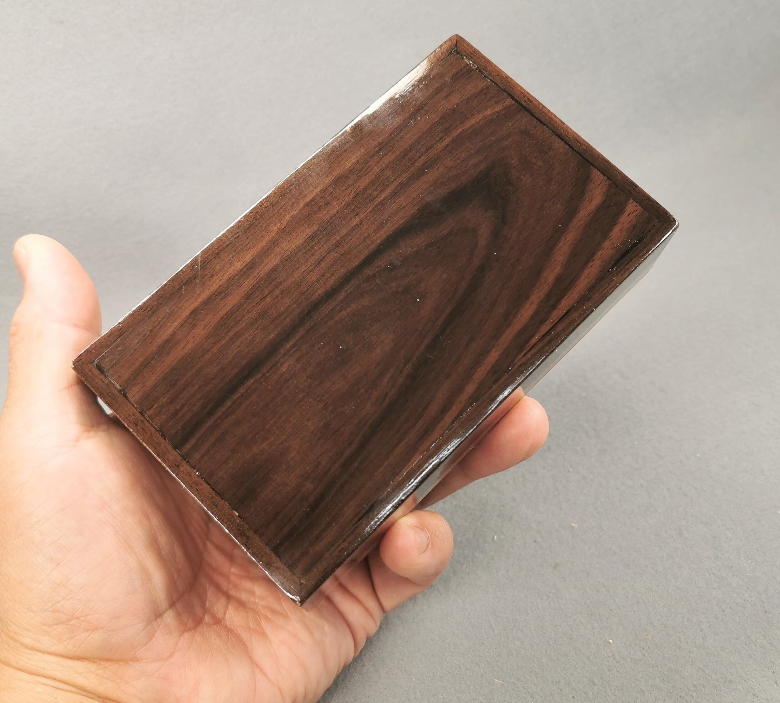 全体が真っ黒な『 真黒 』とは異なる独特の表情を持ち、高硬度で耐久性に優れ重厚な質感が特徴な木軸ペン、彫刻作、高級家具、高級装飾品、指板などに使用され、1つの素材内で黒と他の色が混ざり合う滅多にお目にかかれない『総黒檀瘤杢 極上ツートン』を使用した他では絶対に手に入らない超貴重な落し桶です。※オリジナル専用袋が付きます。