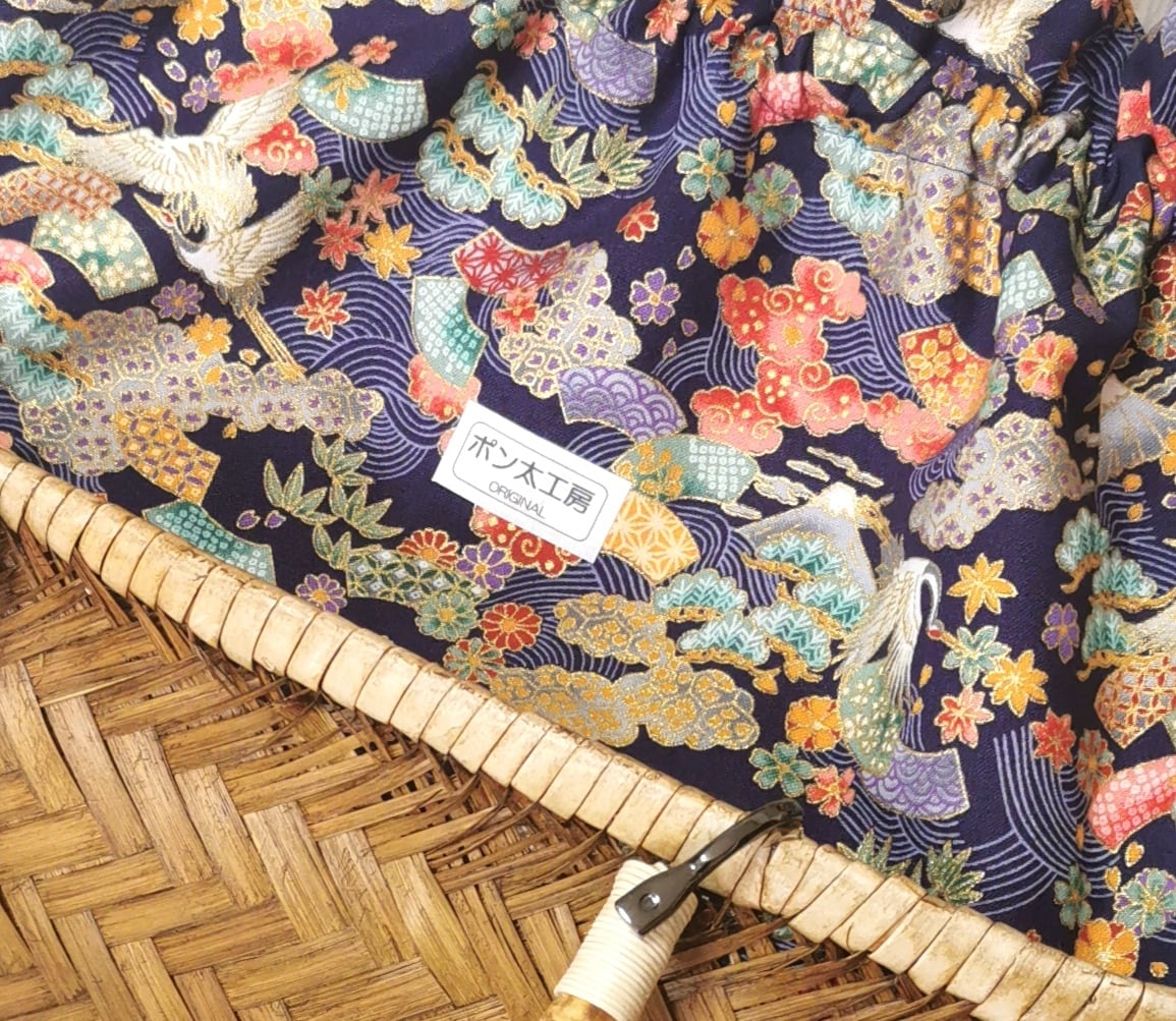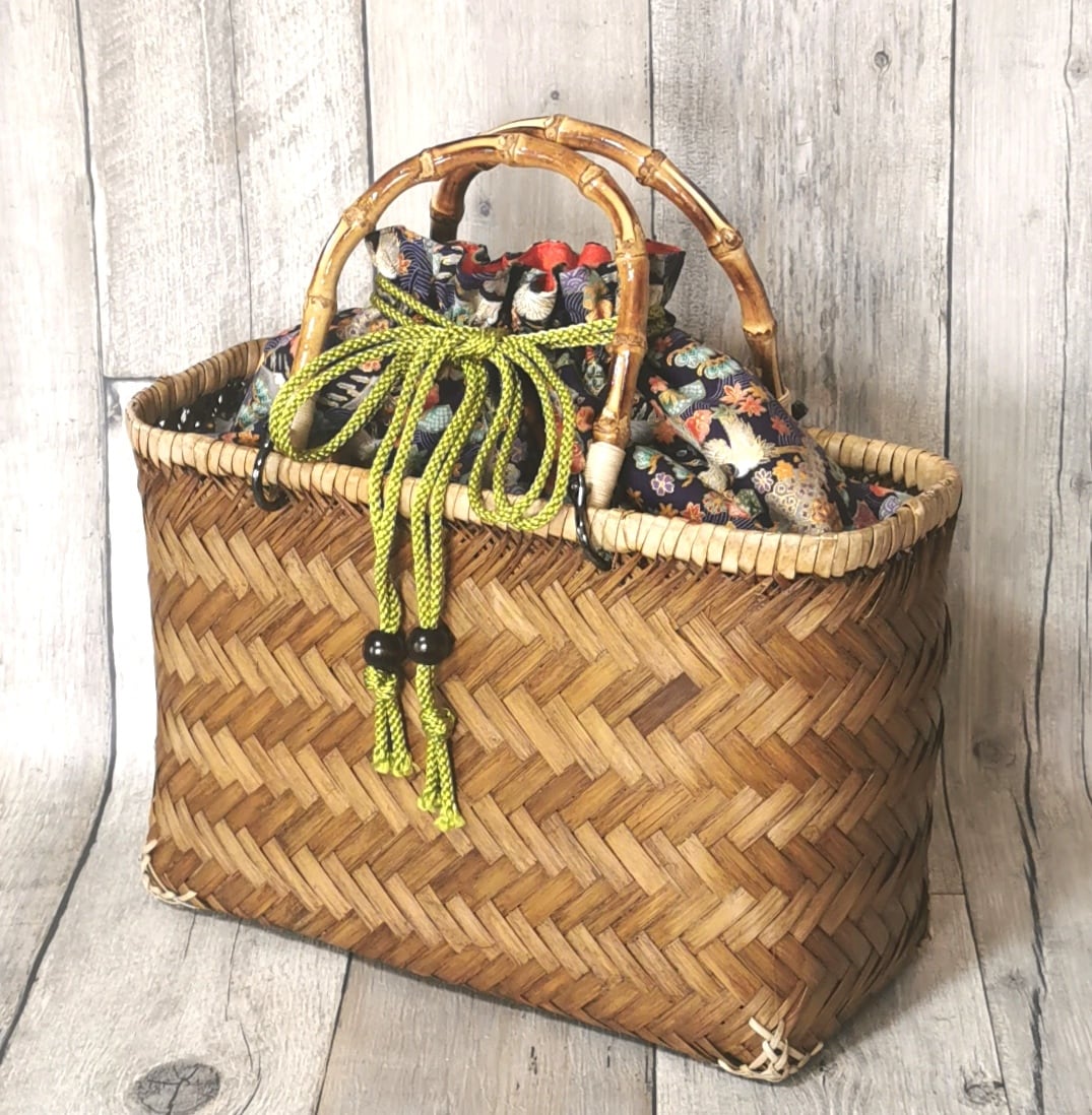 ポン太工房オリジナルの巾着と一体化させた竹かご巾着です!