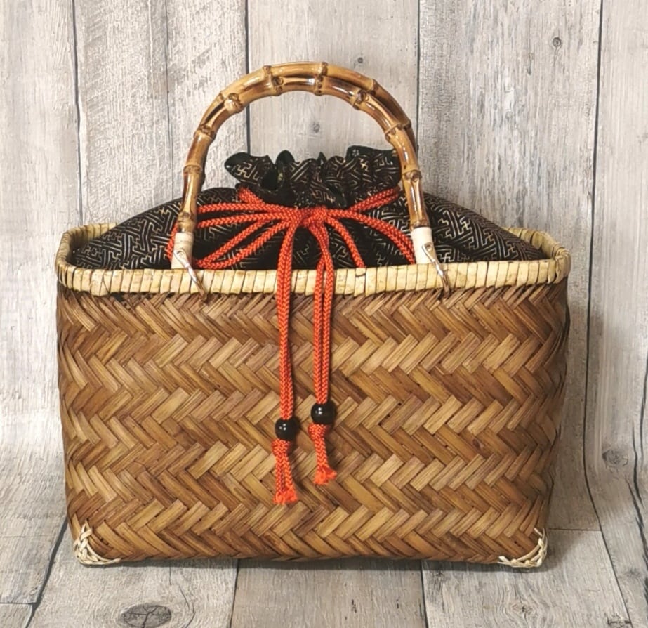 ポン太工房オリジナルの巾着と一体化させた竹かご巾着です!