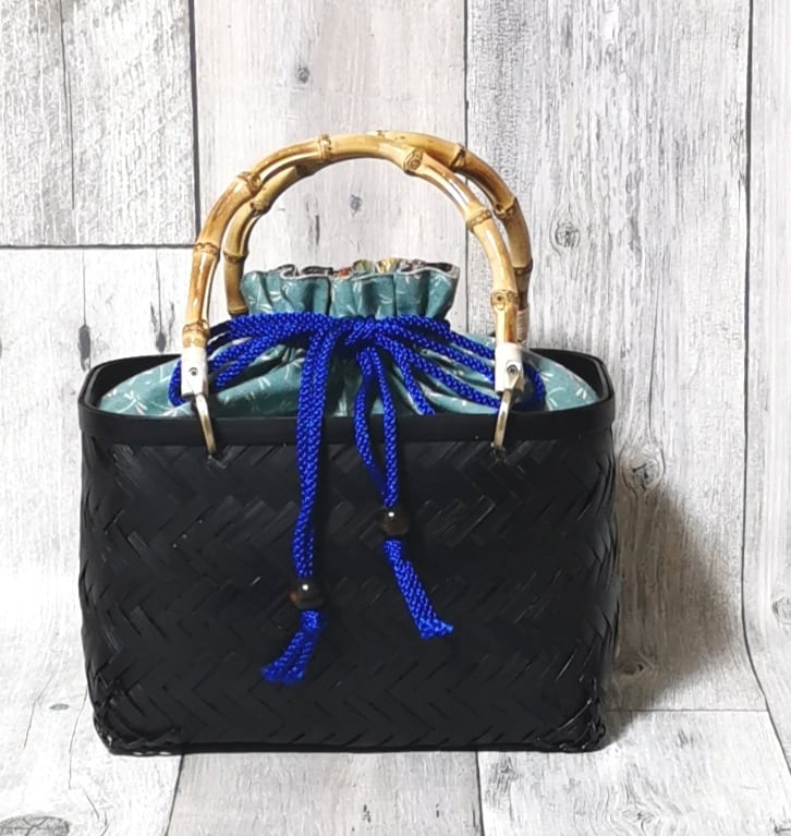ポン太工房オリジナルの巾着と一体化させた竹かご巾着です!