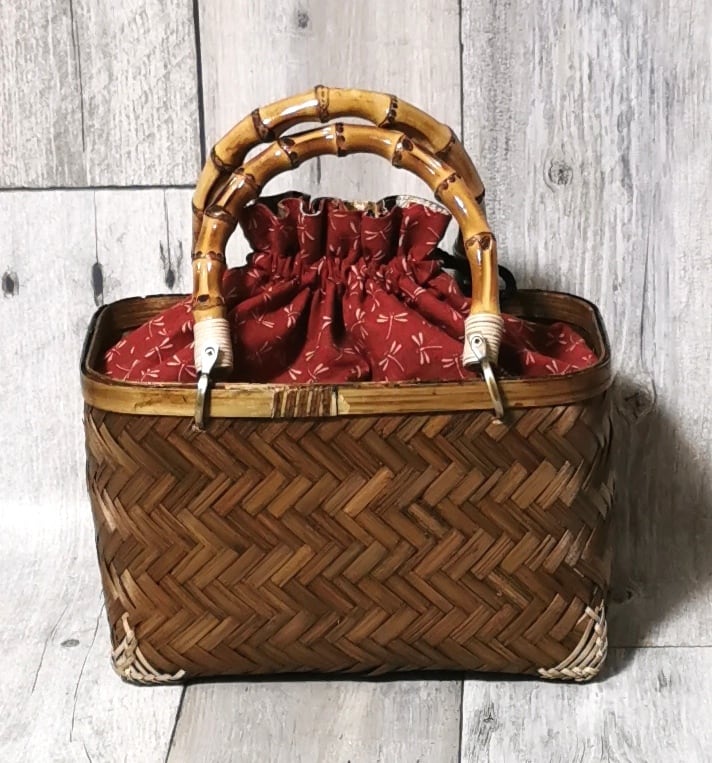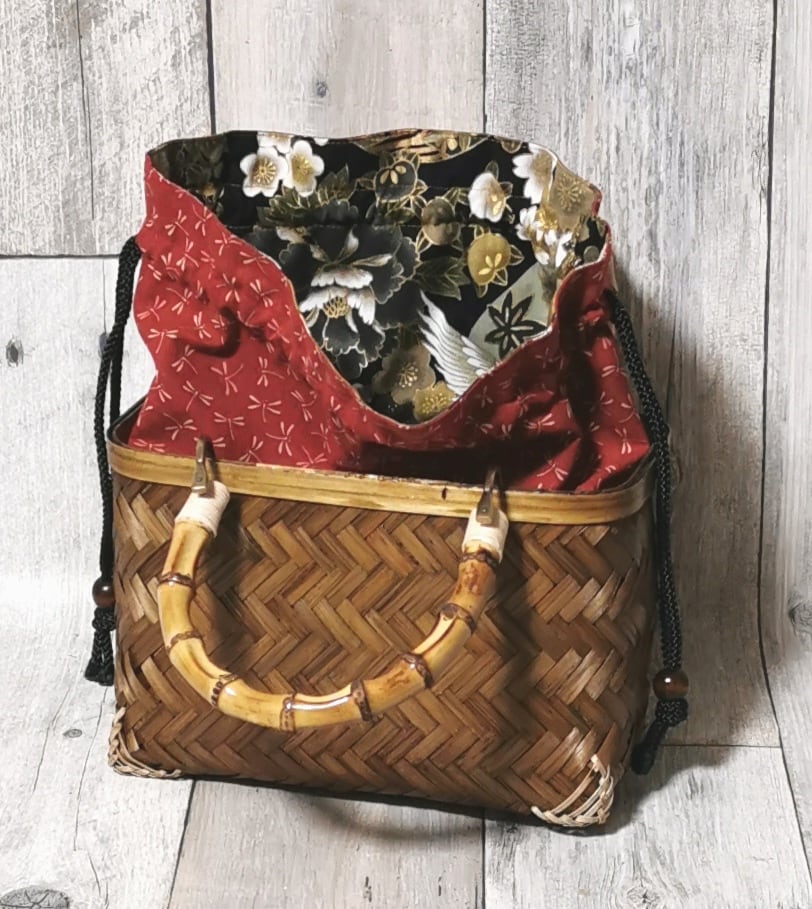 ポン太工房オリジナルの巾着と一体化させたの竹かご巾着です!