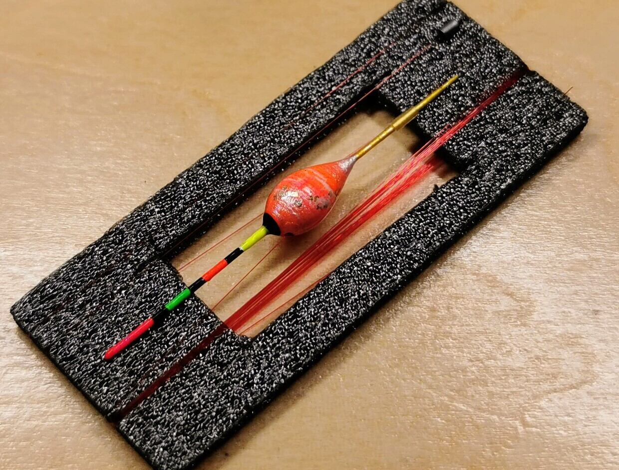 強度、防水性、耐久性、トップの起き上がりバランスを維持するためボディーの中心に超軽量特殊パイプを通し(中通し)、更にそのパイプの中をTOP用として用意した0.4mmソリッドを通してあります。また、斜め通し浮きにすることにより、トップ付き浮きの直付け、誘導式の立ち浮きに見られる様な糸がらみ等のトラブルを最小限に抑え、ストレスフリーで使用できるトータルバランスを重視した浮きです。