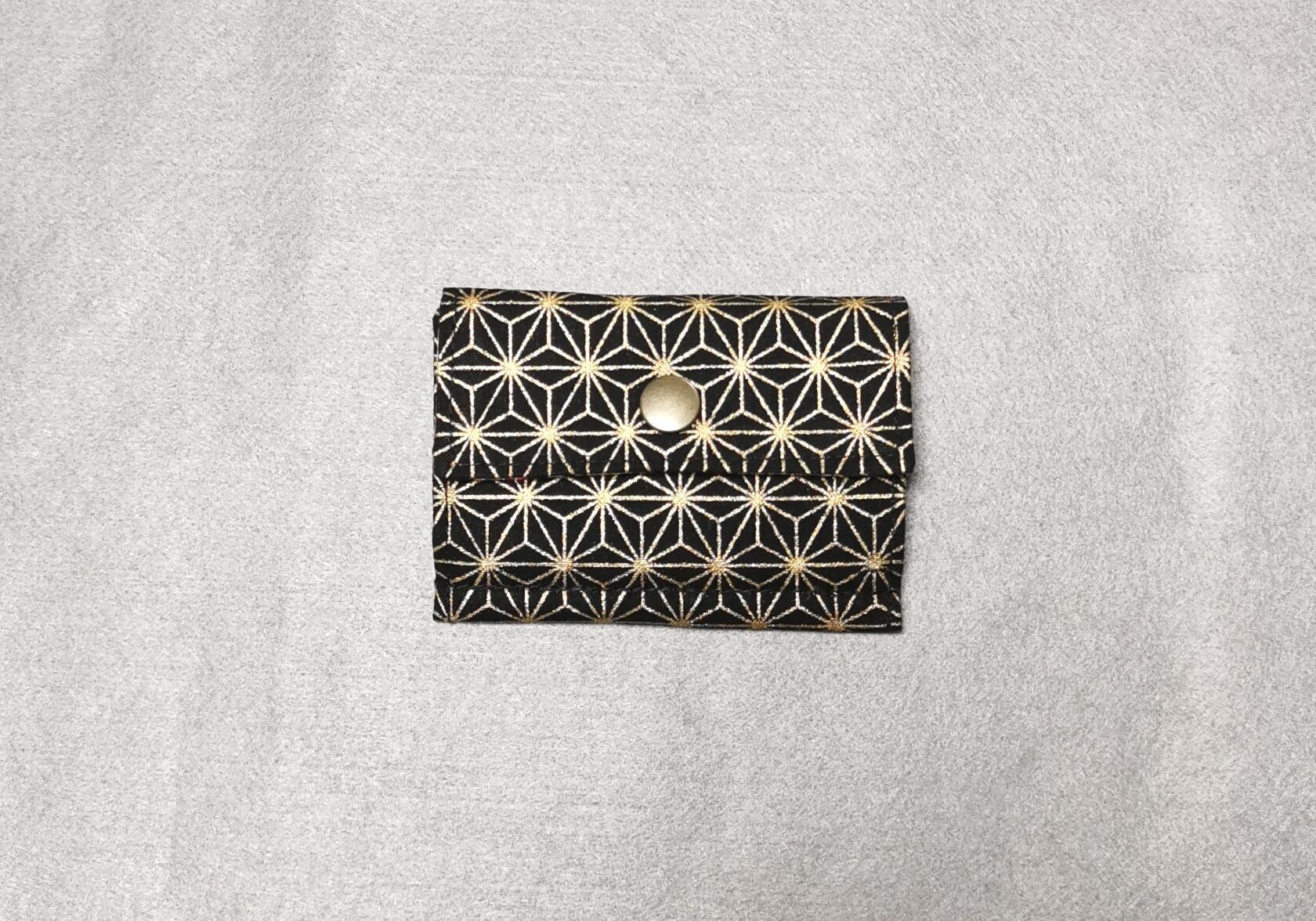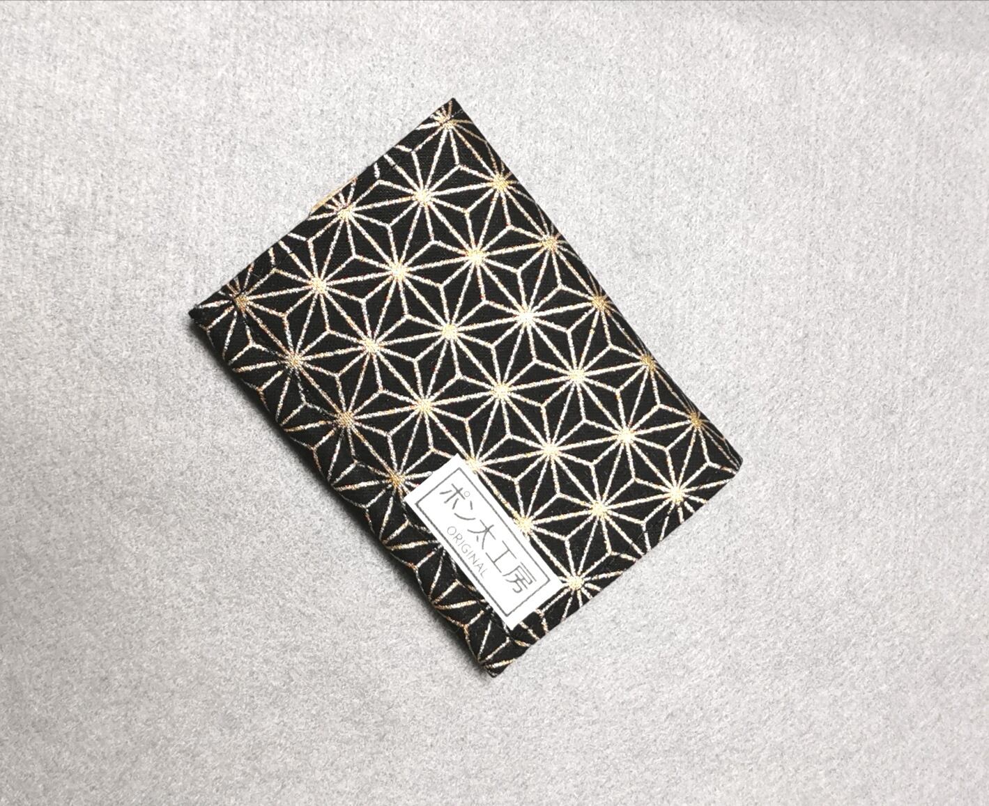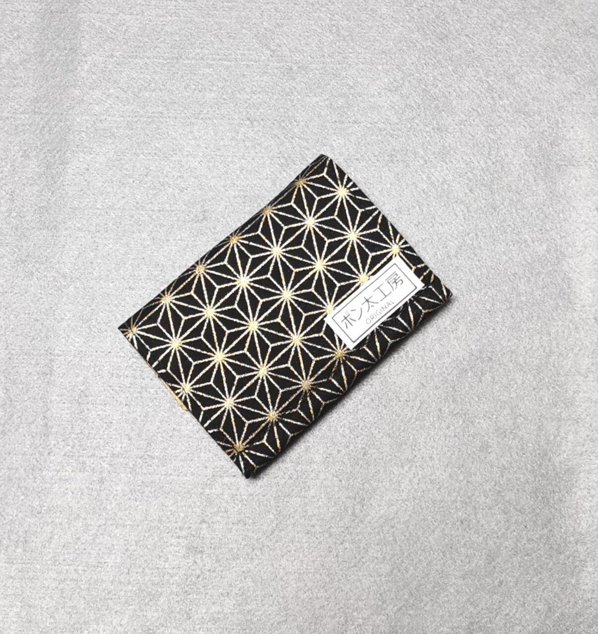 表地は黒地に金の麻の葉模様、裏地は浮世絵柄、両面に接着芯を貼ってあるのでしっかりとした仕上がりになっています。