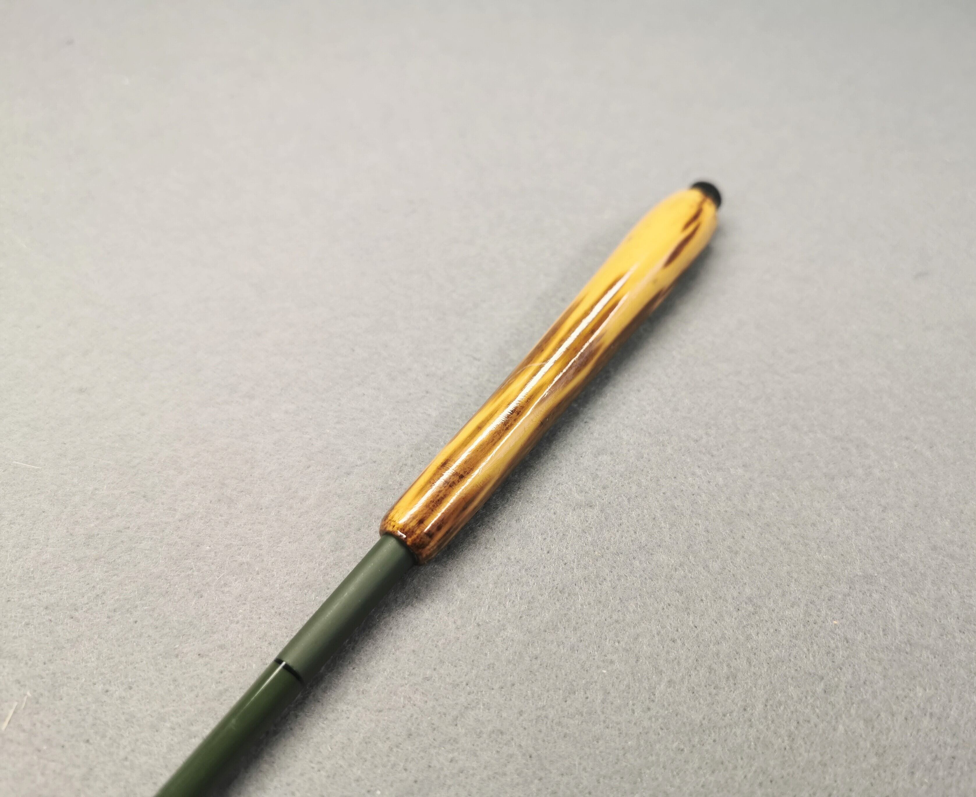 素材は矢竹の変異種のラッキョウ竹を使い、竿先から通すだけの簡単な脱着でしっくりと手に馴染んだ和竿感覚を味わえます。使用しているらっきょう竹(紀州産)は、経過年数で稀に現れる自然の模様が浮き出た美しい物を厳選しております。