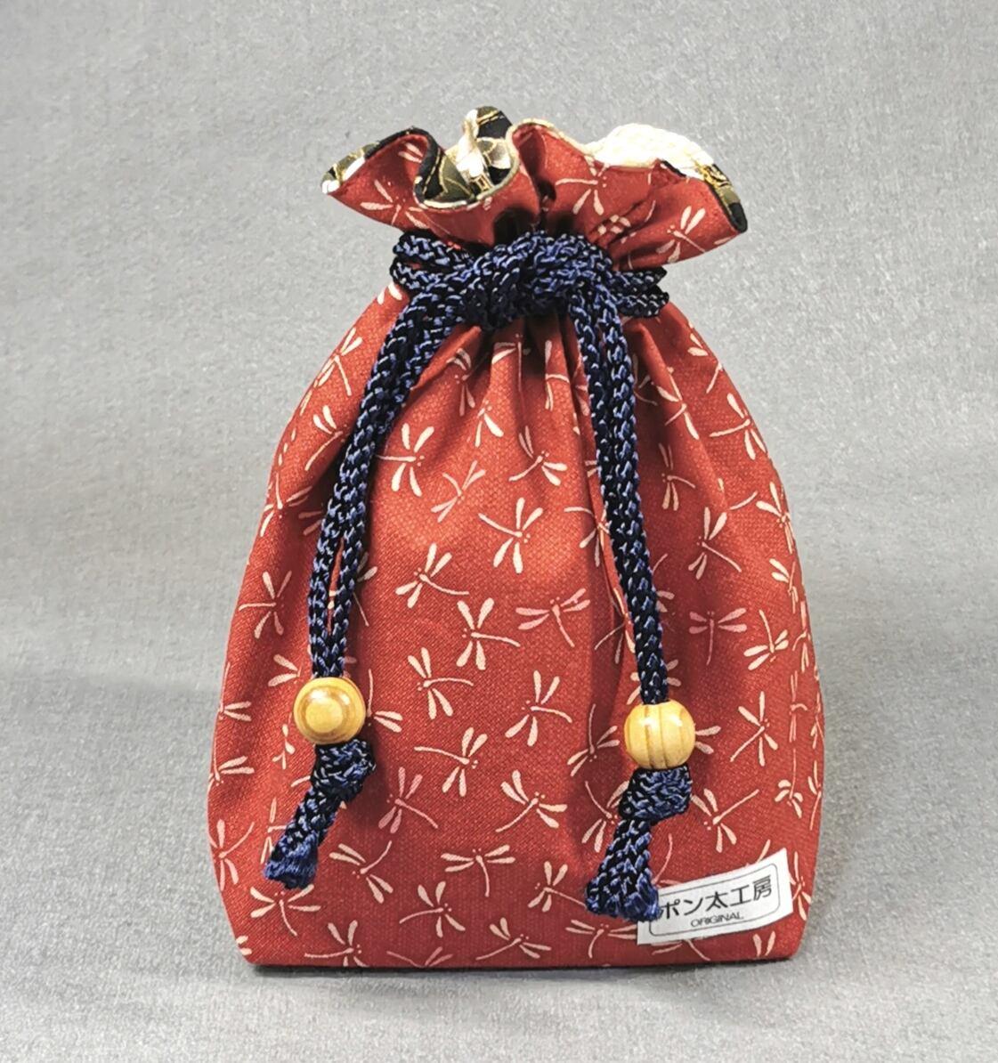 ポン太工房オリジナル巾着袋(中)新・勝ち虫(赤)